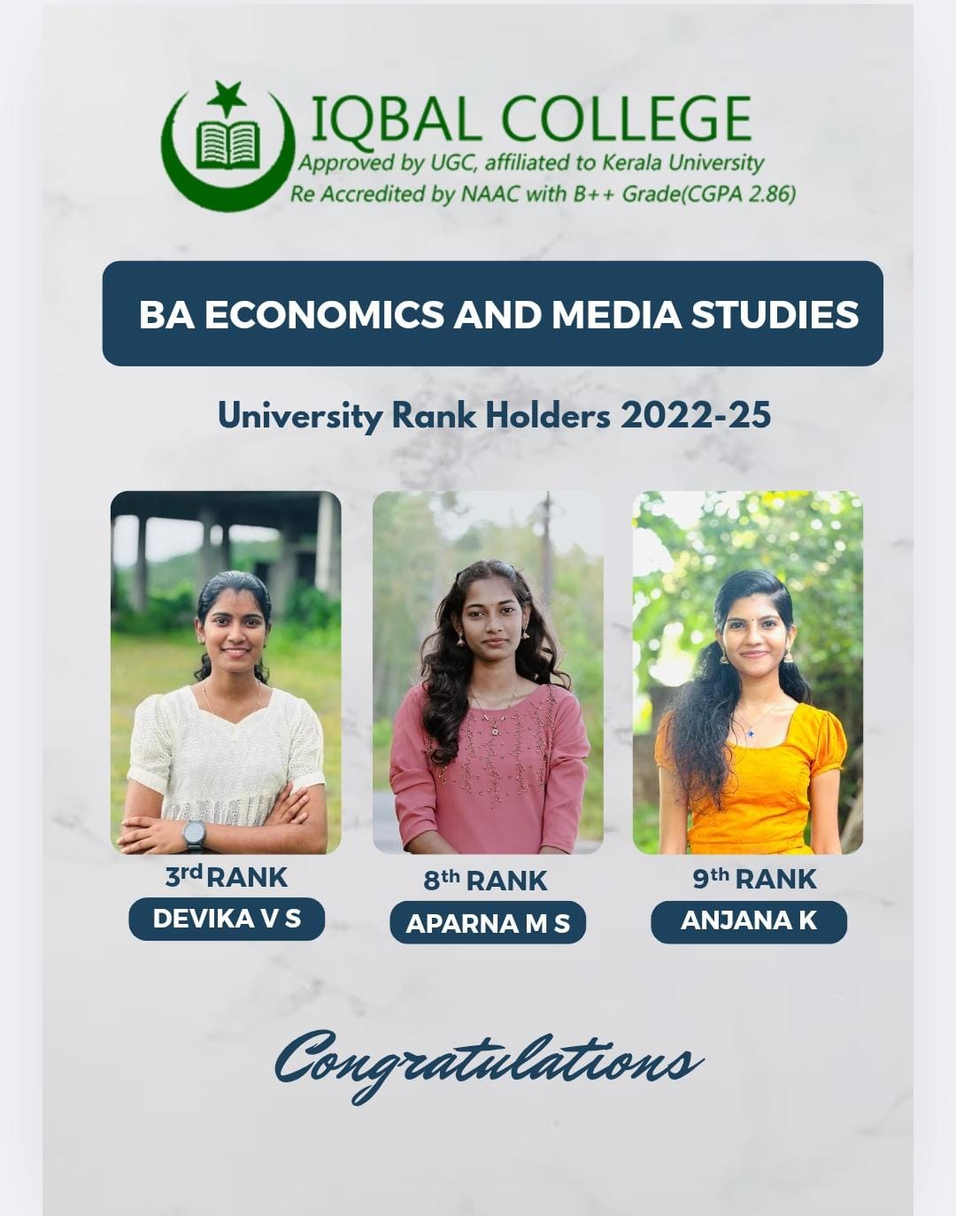 Media Studies aim to prepare students to work in media related industries and train them to critically evaluate the ways in which the media reflects, represents and influences the world. The course provides opportunity to do higher studies in any of the core subjects and get chances in different sectors especially , business journalism. Above all, the department strives to inculcate a feeling of oneness and international understanding among the students .